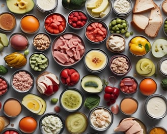 Atún, sardinas, verduras enlatadas, frutas en almíbar.